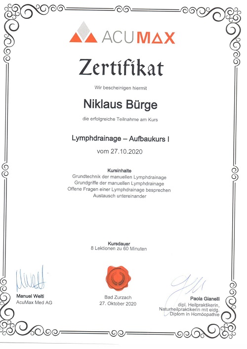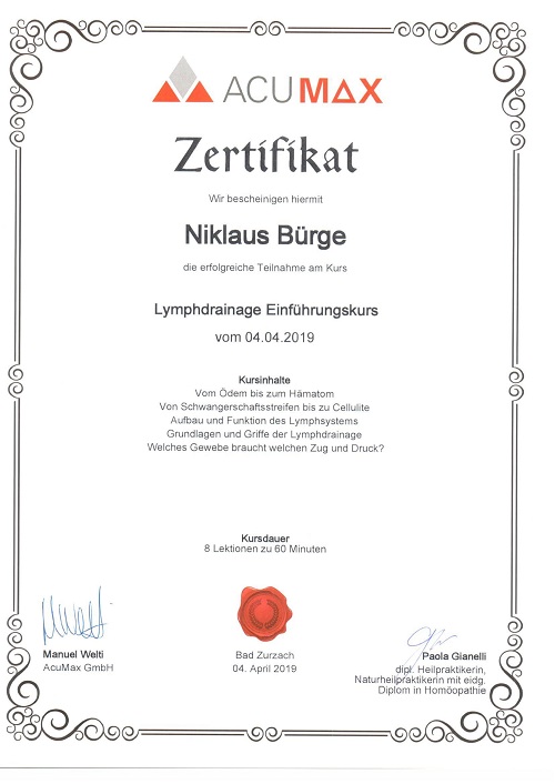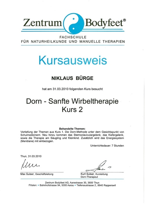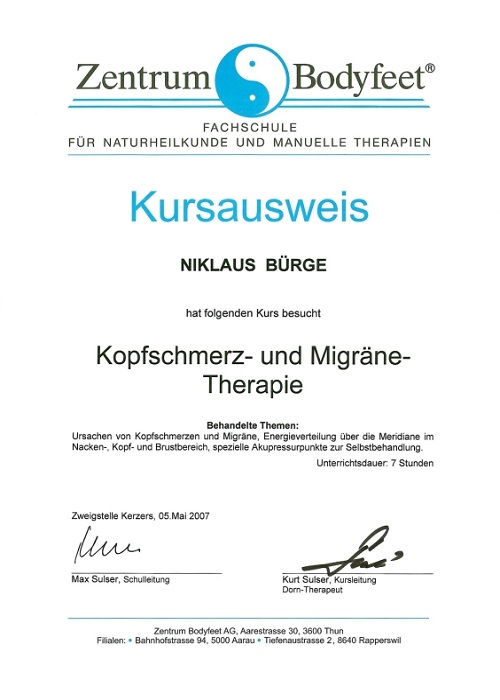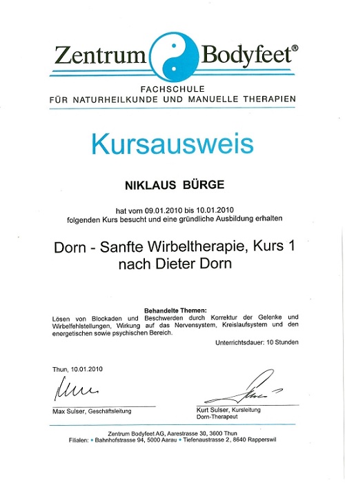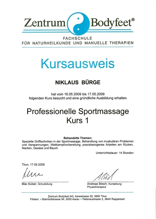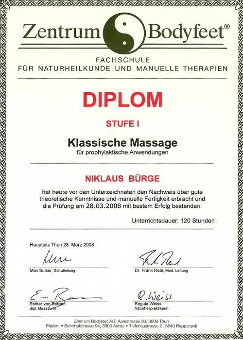 Diplom in klassischer Ganzkörper Massage an der Massageschule Body Feet in Thun 2007/2008 |